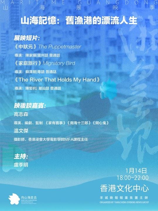 On January 14th, the Maritime Guangdong Program will hold a short film screening and post-screening exchange event at Lemna in the Hong Kong Cultural Centre. You're welcome to come and watch the films to rediscover the cultural shaping of Hong Kong through visual storytelling.