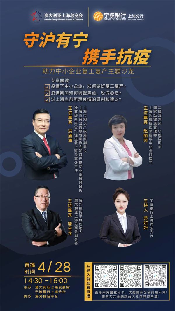 欢迎您入群收看4月28日下午14:30的“助力中小企业复工复产主题沙龙”公益直播讲座️