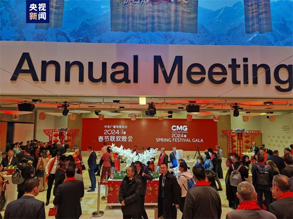 当地时间1月16日,中央广播电视总台制作的龙年春晚动态海报亮相世界经济论坛2024年年会,向与会中外人士推介全球华人一年一度的文化盛宴,展示中国节庆文化以及传统习俗。