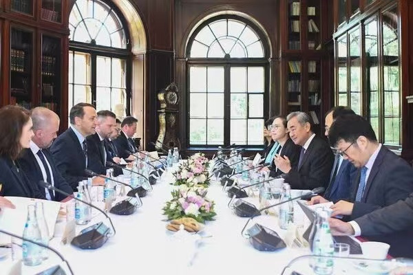 在与西科尔斯基的会谈中,双方一致认为两国友谊弥足珍贵。王毅指出,面对单边主义和关税壁垒,中欧应携手维护国际贸易秩序。西科尔斯基则表示,波方坚定奉行一个中国政策,愿在经贸、人文、新能源汽车等领域加强合作。
