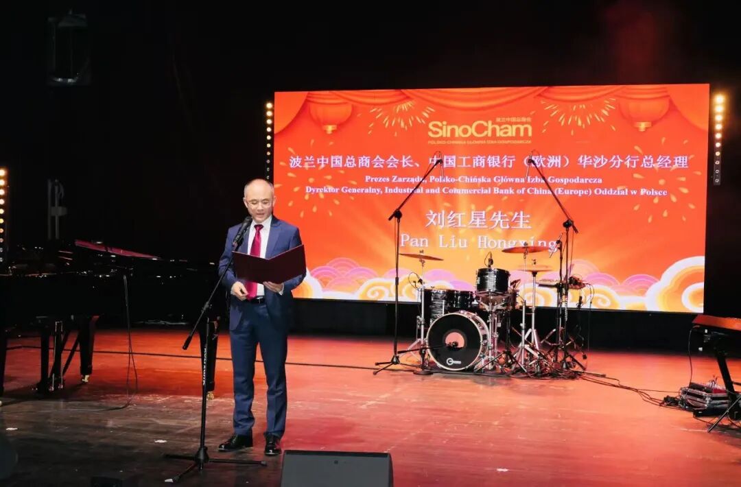 活动伊始,波兰中国总商会会长、中国工商银行(欧洲)华沙分行总经理刘红星致辞。他向中国驻波兰使馆领导、旅波华侨华人、中资企业代表以及各位嘉宾致以诚挚的新春问候和美好祝福。他表示,春节是中华民族最重要、最温暖的传统节日,在异国他乡共庆新春,不仅是一场节日庆祝,更是一份团圆情谊与共同愿景的表达。
