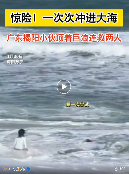揭阳退伍军人林佳泰冲向海边
