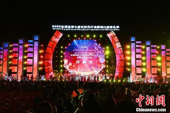8月18日晚,第七届古城花灯会在四川松潘开幕。本次系列活动是以“花灯璀璨岷江源,喜迎建州70周年”为主题,旨在通过开展一系列高水准、多样化的音乐演出和融入生活的花灯文化活动,推动松潘文化旅游市场更加繁荣,助力文旅融合高质量发展,大力营造传承发展优秀传统文化的良好氛围,满足人民群众高品质生活需求,为“一城两心三地”和“五个松潘”建设贡献文化之力,同时向阿坝州建州70周年倾情献礼。图为开幕式上的文艺演出。