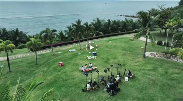 海边的沙滩上,草坪的椰树旁,转角楼梯的鸡蛋花下……这些景致都成了一条条融媒体视频里绝好的采访背景、自然的空镜素材。十个人的小团队、九位嘉宾,仅用一天时间就以轻量化装备高效完成节目录制。椰子树旁的演播厅还能打开多少节目制播的可能性?我们继续期待。