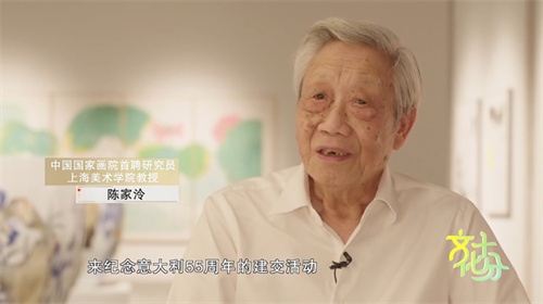中国国家画院首聘研究员、上海美术学院教授 陈家泠:这一次受到总台的邀请,来纪念中国与意大利建交55周年的活动。我的作品要让人家有一种美好的感觉,有一种温馨的感觉。我这一次选了我的一幅作品,它的名字叫《温馨》。我相信人性是相同的,它代表一种和美、热烈、温馨、美好、友好的情怀。他们(观众)评价这个作品有中国式的温暖,我觉得很有意思。这幅作品,西方的人也喜欢,东方的人也喜欢,有一种美美与共的感觉。