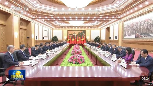 △中越元首会谈现场。(总台记者李晋拍摄)
