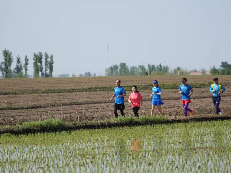 Xi Zhanyu leading a group of running enthusiasts from neighboring villages. (Xinhua/Zheng Zhi)