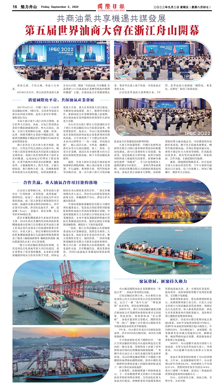 8月30日至31日,第五届世界油商大会在舟山召开。围绕“共商油气 共享机遇 共谋发展——全球油气产业转型创新的挑战与机遇”主题,全球油气全产业链相关企业、专家等在线上线下与会,共探油气产业的未来。