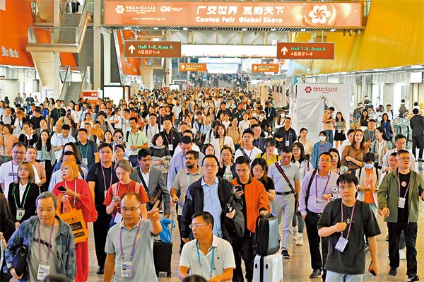 廣州去年經濟表現出色,其中2023年廣交會展覽面積、參展企業均創歷史新高。圖為第134屆廣交會現場人潮湧動。中新社