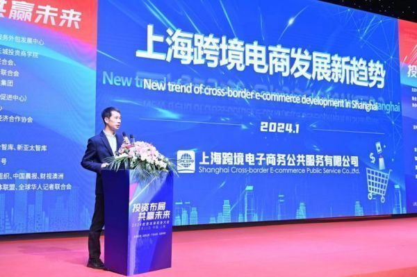 主题演讲环节,上海跨境电子商务公共服务平台有限公司副总经理顾红春分享的主题是《上海跨境电商发展新趋势》