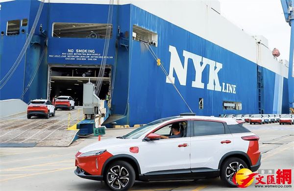 灣區港口近年外貿汽車出口航線增加,圖為商品車經廣州港出口。(方俊明攝)