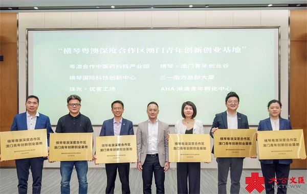 橫琴粵澳深度合作區「澳門青年創新創業基地」授牌。(大公文匯網記者方俊明攝)