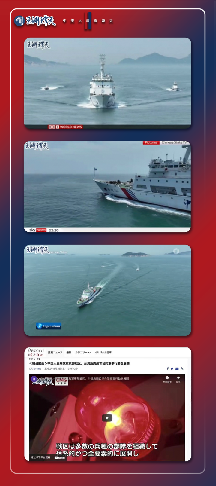 全球“广泛发”!针对佩洛西窜台行动,玉渊谭天在各关键节点,适时适度梯度精准释放中方行动信息,先后播发了20余个重磅拳头产品,多个产品被全球主要媒体转载,成为舆论反制的前哨站和特种兵。