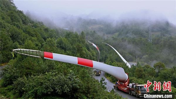 在蜿蜒的山路上运输叶片。 华电新能盐源公司供图
