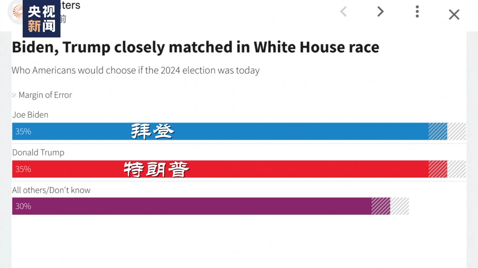 多个最新民调显示,两人目前的民意支持率几乎持平。