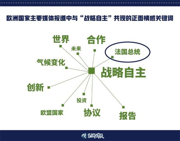 在对欧洲国家主要媒体报道中与“战略自主”共现的正面情感关键词进行分析后,谭主发现,“法国总统”是其中出现的高频词。