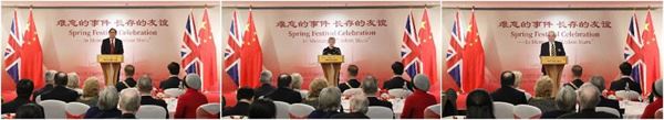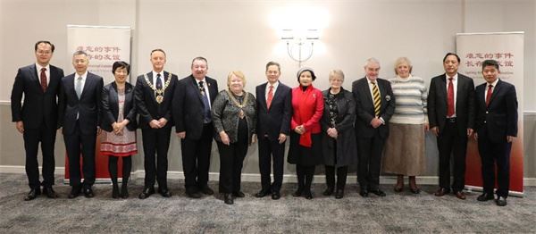 英国当地时间2月24日,中国驻英国使馆在英国格洛斯特郡为“里斯本丸”幸存者家属及相关人士举行2024年新春招待会,追忆“里斯本丸”营救事件,共同庆祝中国元宵佳节。中国驻英国大使郑泽光出席活动并致辞,格洛斯特市市长威廉姆斯、“里斯本丸”幸存者丹尼斯·莫利之女丹妮丝·维尼、长期致力于收集整理“里斯本丸”营救事件资料的英国退役少校费恩祺、浙江省外办副主任陈艳勤、中共舟山市委常委、宣传部部长刘中华以及“里斯本丸”英军战俘和当年参与营救英军战俘的舟山渔民后人代表等约200人参加。