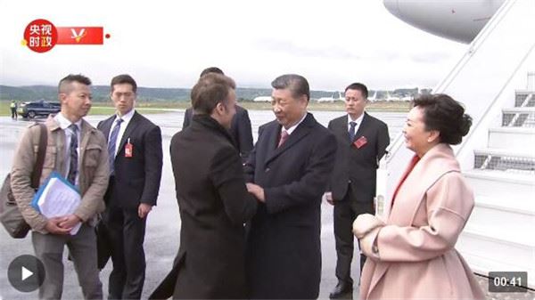 当地时间7日中午,习主席专机抵达省会塔布的机场时,提前抵达机场的马克龙总统夫妇,率法国地方政府代表热情迎接,欢迎习主席夫妇访问对他具有特殊意义的上比利牛斯省。