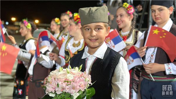 △机场迎接习主席的塞尔维亚少年。(总台央视记者范一鸣拍摄)