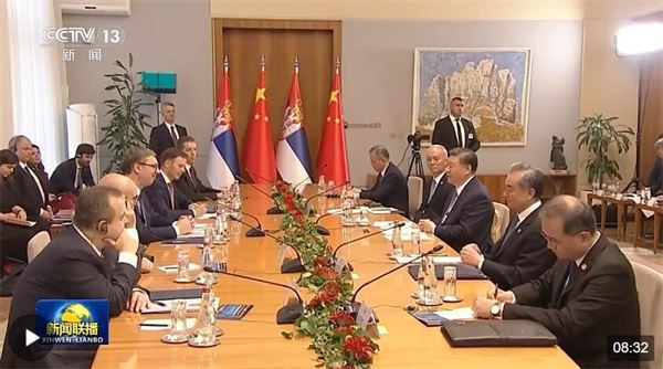 当地时间5月8日上午,国家主席习近平在贝尔格莱德塞尔维亚大厦同塞尔维亚总统武契奇举行会谈。两国元首宣布,深化和提升中塞全面战略伙伴关系,构建新时代中塞命运共同体。