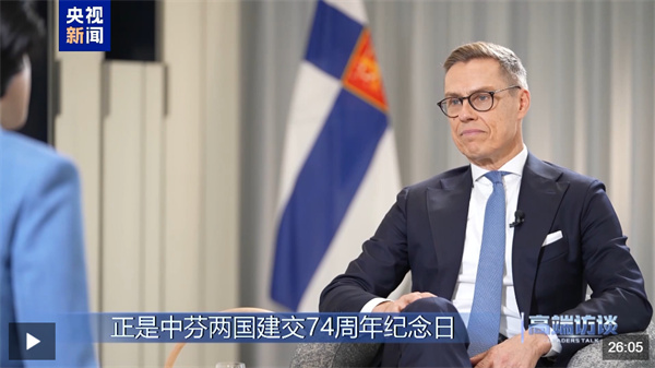在专访当中,斯图布总统表示,本次访华之旅当中他见证了中国的发展成就。他表示,期待芬中两国进一步深化经贸、绿色能源等领域的务实合作。他还说,当今世界面临多重全球性挑战,多边合作更应该成为时代发展的主旋律,芬方愿为推动欧中关系顺利发展发挥积极作用。