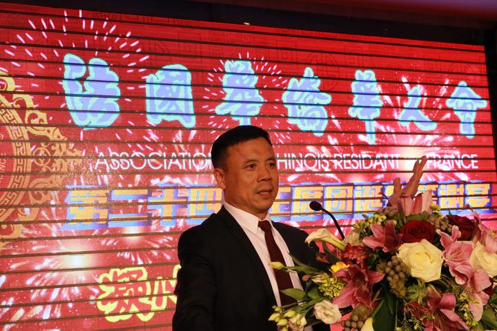 他说:众所周知,法国华侨华人会是旅居法华人华侨在中华人民共和国和法兰西共和国建交后最早建立的一个侨团组织,它于1971年8月经法国政府批准建立,至今已走过了51年的风风雨雨。如果追溯到法国华侨华人总会的前身“工商互助会”,那么,本会已经拥有70多年的历史。70多年来,法国华侨华人会历经坎坷,却初心不改,始终坚持“团结乡亲、爱国爱乡”的建会宗旨,在传承并弘扬中华文化、服务侨社、维护华人尊严和权益,推进乡亲融入、参政议政、促进侨界团结、树立华人“勤劳、友爱、守法”的形象、以及促进祖国和平统一大业等各领域进行了坚持不懈的努力,得到了中法两国政府的高度重视和大力支持,成为了中法交流和两国人民友谊的桥梁。所有的这一切,都离不开中国驻法国大使馆的亲切关怀和指导,离不开兄弟侨团的鼎力支持和帮助,离不开广大会员的拼搏和进取!借此机会,请再一次接受我们最崇高的敬意!