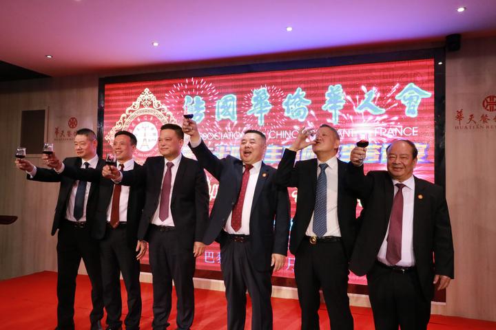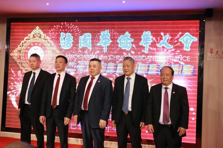 法国华侨华人会24届主席团选举和谐、团结、热烈,当选主席蔡君柱、候任主席郑金标、执行主席夏宝康、第一副主席丁仕定、秘书长董德义5位私人出资,举办了这次答谢晚宴。