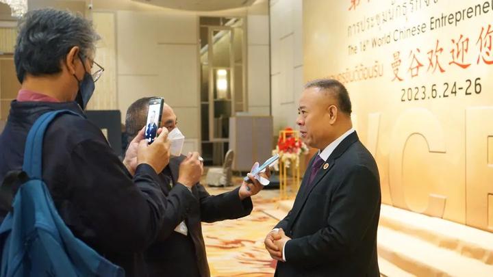 第16届世界华商大会执行主席、泰国中华总商会副主席李桂雄接受媒体采访
