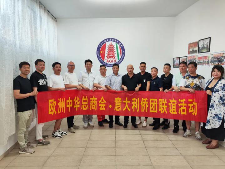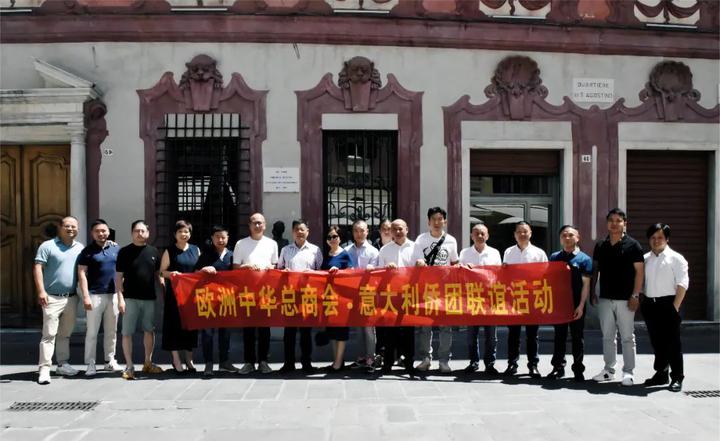 6月26日,陈贻成、林海、蔡锦九一行到访意大利普拉托,受到意大利瑞安华侨华人总会会长丁金荣、意大利中部华侨华人北方商贸联谊总会会长金祝善、意大利永嘉总商会会长叶建敏等当地侨团负责人的热情接待。图为在意大利瑞安华侨华人总会会馆合影。