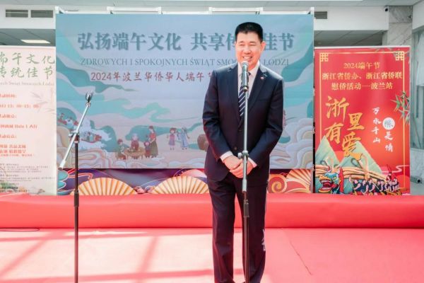 本次活动由波兰浙江商会会长傅利敏、波兰华人商会秘书长李雁主持。孙霖江大使、波兰亚洲商会主席皮耶豪钦斯基、波兰中国商会会长韩宝华和波兰华侨华人协会会长赵德金分别致辞,祝旅波华人华侨端午安康。