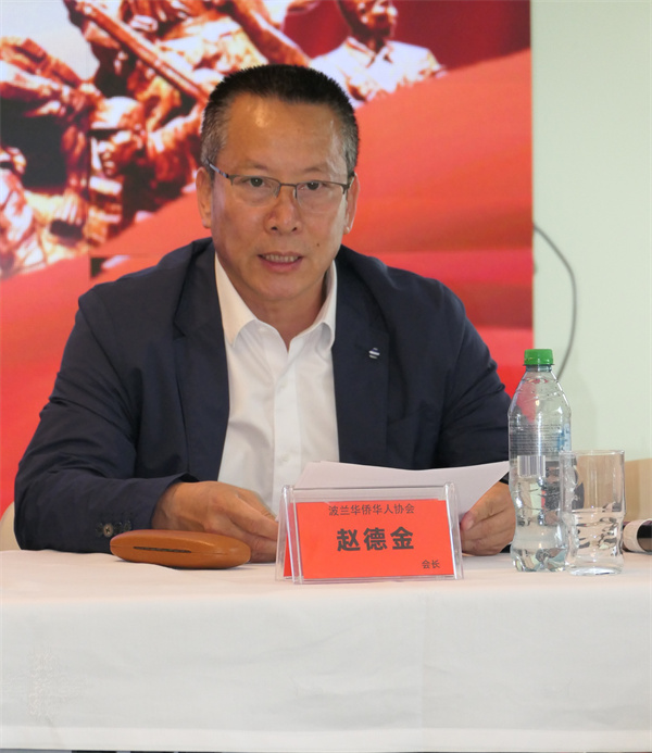 座谈会上,波兰华侨华人协会会长赵德金在致辞中表示:抗日战争的胜利是正义战胜邪恶、光明战胜黑暗的伟大胜利,值得世代铭记。他强调,广大华侨在抗战期间踊跃捐款捐物、宣传抗日,甚至有人不远万里回国参战,展现了侨界深沉的家国情怀和所作出的巨大贡献。赵德金会长号召旅波侨界从历史中汲取智慧与力量,坚决反对历史虚无主义,珍惜来之不易的和平环境,继续发挥桥梁纽带作用,积极推动中波交流与合作,为实现中华民族伟大复兴和促进世界和平贡献侨界力量。