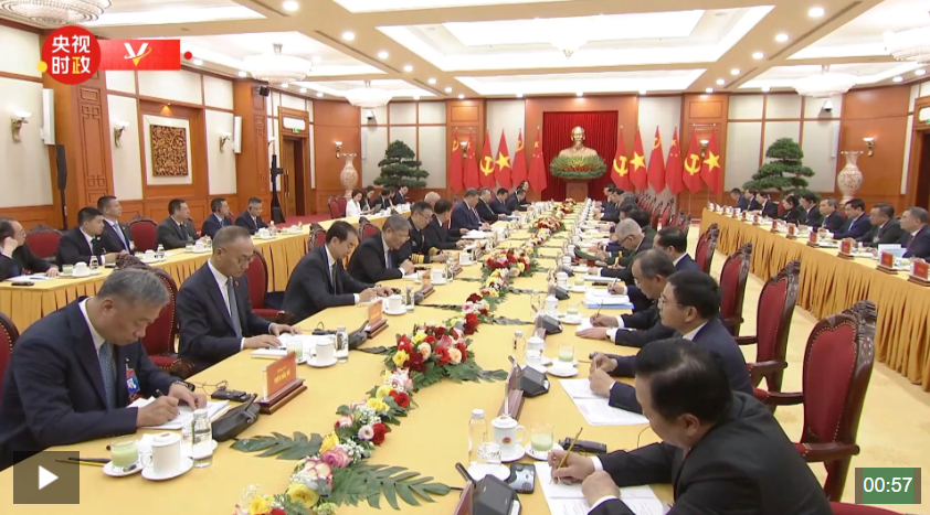 4月14日晚,国家主席习近平在越共中央驻地会见越南总理范明政。 习近平指出,在越南党和政府领导下,越南政治社会稳定,革新事业成就喜人,国际地位日益提升,中方为此感到高兴。中越都肩负着实现民族振兴、加快国...(13820)人阅读时间:2025-04-16
