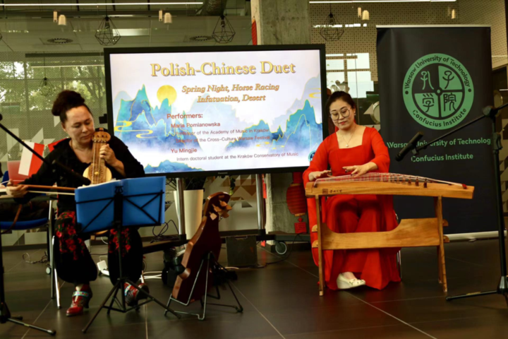 活动现场,波兰武术协会主席奥苏赫率领的团队表演了中国武术;来自克拉科夫音乐学院的教授玛丽亚·波米亚诺夫斯卡及其博士生于明洁以中波传统民族乐器二重奏的形式演奏了《春江花月夜》、《痴情冢》、《赛马》等多首中国民乐传统名曲。此外,华沙理工大学孔子学院中方院长赵海燕还向大家介绍了茶艺、书法等各具特色的六个工作坊,让大家感受和体验中华文化的特色和魅力。