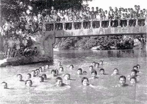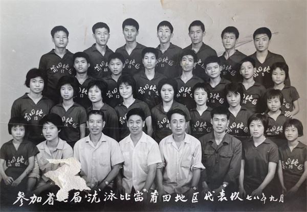 1976年,莆田县少体校游泳队响应毛主席号召到大江大河中顶着大风大浪奋勇前进!全体游泳队大的二十二岁、小的九岁从莆田一中后门天九湾出发,历时五个小时,三十公里畅游木兰溪内河航运抵达涵江区内留下珍贵的合影!