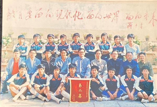 1994年,黄勇作为福建省高校大学生足球队教练参加全省运动会足球项目的比赛,全体教练员、运动员和工作人员合影。