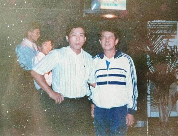 1990年,黄勇跟随福建省税务局蓝球队参加在江苏省南通市举办的全国税务系统蓝球联赛,担任裁判工作,全体篮球队员合影。黄勇父亲黄寿南为领队(后排左四)。