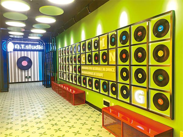 恒利創客區牆面上的LED黑膠光盤元素。(香港文匯報深圳傳真)