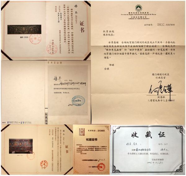 2009年12月14日作品“释迦牟尼画传”“回归十周年”被澳门特别行政区收藏/9832/GCE/2009收藏奖。