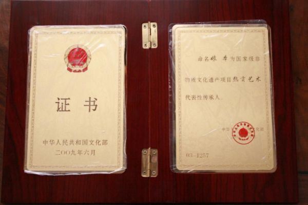 2009年6月非物质文化遗产保护工作先进个人奖。