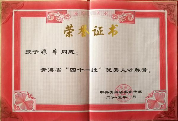 2015年1月被授予青海省“四个一批”优秀人才。