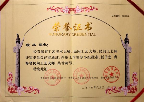2010年6月被授予青海省民间工艺大师。