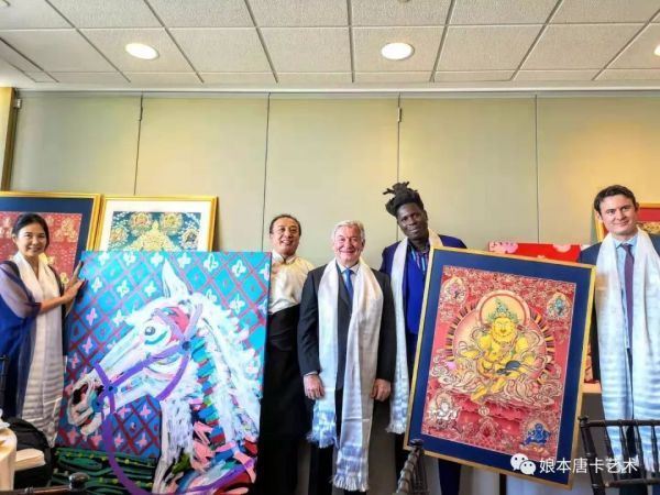 2019年11月8日下午,中国工艺美术大师、国家级非物质文化遗产项目“热贡艺术”代表性传承人娘本与美国涂鸦艺术家布拉德利·西奥多Bradley Theodore作品交换及艺术交流会在联合国总部举办。艺术交流会展览展出娘本大师的唐卡作品和美国涂鸦艺术家布拉德利·西奥多Bradley Theodore的作品。