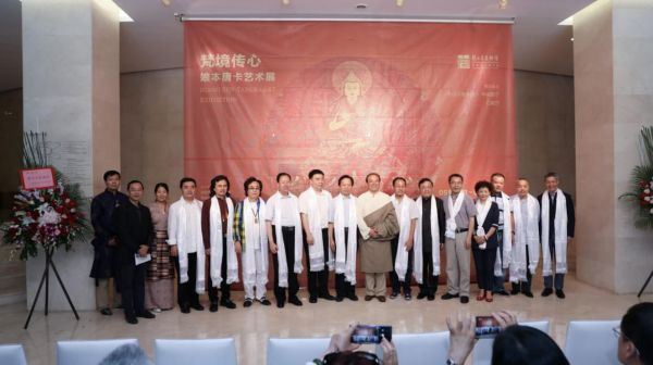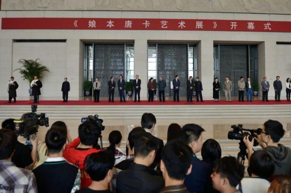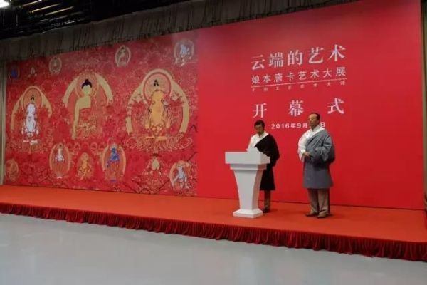 2019年11月26日下午,外交部蓝厅宾朋云集,气氛热烈,以“新时代的中国:大美青海从三江源走向世界”为主题的外交部青海全球推介活动隆重举行,娘本携精美热贡唐卡作品参加本次活动,会场上娘本在现场展演热贡唐卡的绘制并对前来参观的领导及游客就热贡唐卡文化进行讲解。