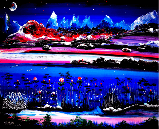 黄建南的作品灵感来自38,000英里的中国之旅,这成为他作品的灵感来源,这就是我对它们如此感兴趣的原因。他的绘画包含一种形而上学的感觉,以及一种直接来自地球、来自宇宙的能量的超然感。他的作品将这些能量转化为充满活力的色彩和组织,以及从这些作品中散发出来的无拘无束的诗歌。