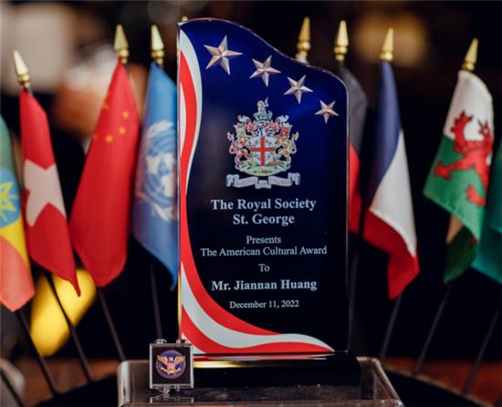 欧中之声讯 近日,英国皇家学会(RSSG)与美国联合国协会(UNA- USA)在洛杉矶圣塔莫丽卡共同举办颁奖典礼,迈克尔·阿塔尔教授(Professor Michael Atar)和克里斯托弗·洛维罗(Christopher Loverro)获得特别大奖,中国艺术家黄建南则将英国皇家学会(RSSG)的“美国文化奖”收入囊中。