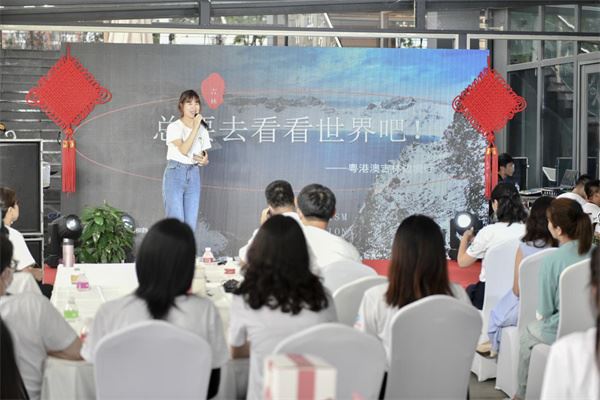 吉林省文化和旅游厅国际与港澳台事务处处长宋咏、副处长范敏与粤港澳大湾区青少年互赠礼品。梁琪佳摄