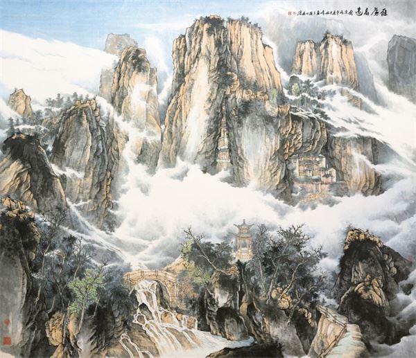 中国美术学院教授、博士生导师刘国辉认为,画的超越源于心的超越,茹峰的作品无论是崇山峻岭、浮云奔泉,还是杂树茅舍,都作了新的整合、编排,赋传统的题材以新的神采,画面显示了他精到的传统功力和造景能力。茹峰张扬了古已有之的“吹云弹雪”法,泼彩吹拂,寓人工于天成,把尽兴流淌的粉彩变成富有灵性的流云霞光,犹如温顺的精灵偎依在葱郁的山峦之间,刚柔相济,动静对应,冷寂的表象下跃动着生命的脉搏。这里不含玄妙的禅机,这里没有老庄的超然,这里是茹峰构筑的一个属于他自己的语境,一则倾泻人世感怀的茹峰式的山林情话。