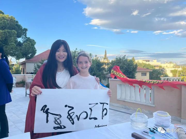 希腊小朋友阿芙耶妮娅在老师的指导下用毛笔书写了“茶和天下”,她说这是她创作的第一幅中国书法,是非常珍贵的艺术品,会将它一直珍藏。