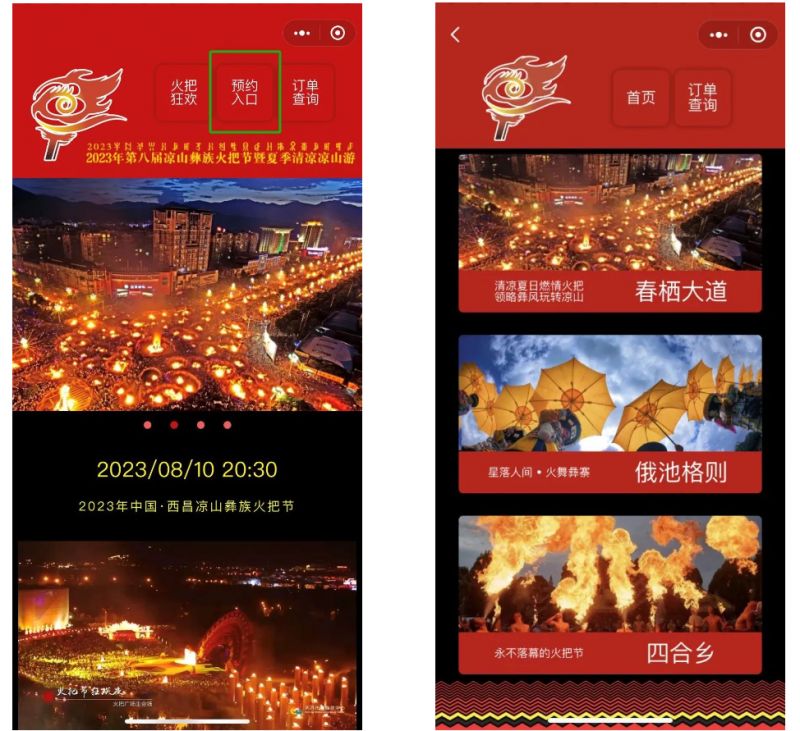 2023年8月10日晚,2023年第八届凉山彝族火把节火把狂欢夜活动开启,今年火把狂欢夜将实行网络预约报名限额入场,各会场预约名额满后关闭预约通道,预约成功的游客凭电子票入场。