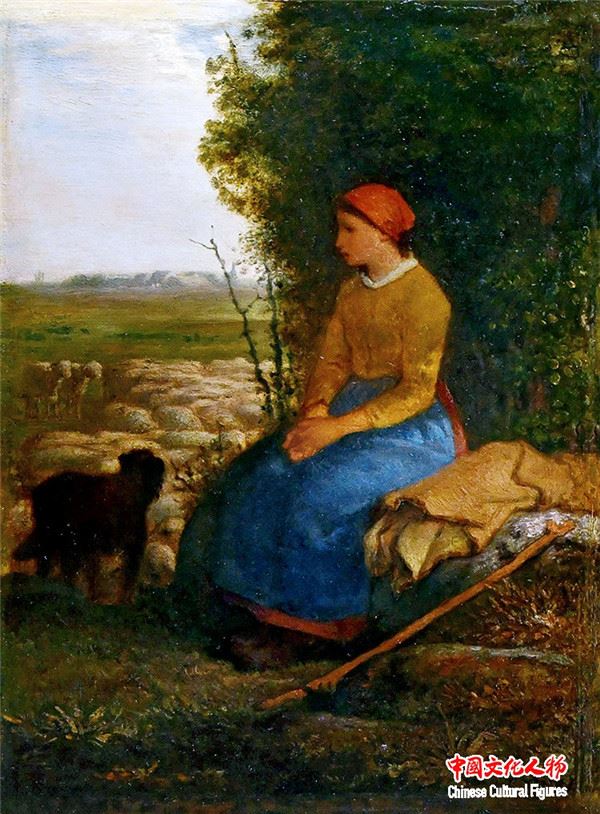 欧洲油画珍藏作品:米勒《休憩的牧羊女》